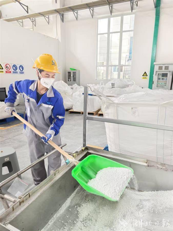 踏入园区生产车间,只见传送带上的自动分拣装置,正有节奏地吞吐着原料。一团团形似“面粉”的白色颗粒,随着簌簌滑落。